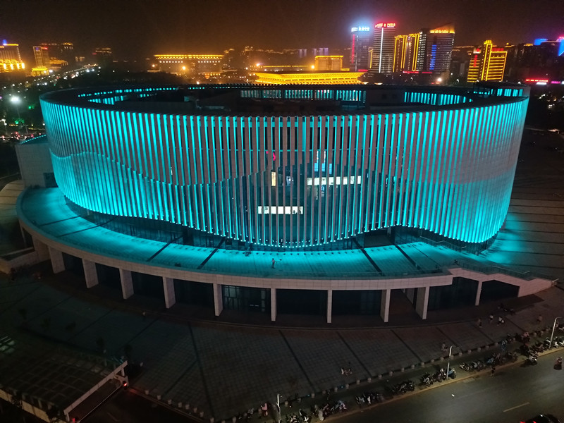 由于建筑本身的特點(diǎn),全部選取RGB投光燈打亮建筑營(yíng)造夜景氣氛,共計(jì)1230套投光燈,DMX512控制系統(tǒng),實(shí)現(xiàn)整體聯(lián)動(dòng)變化效果,完美的詮釋了建筑本身的美。